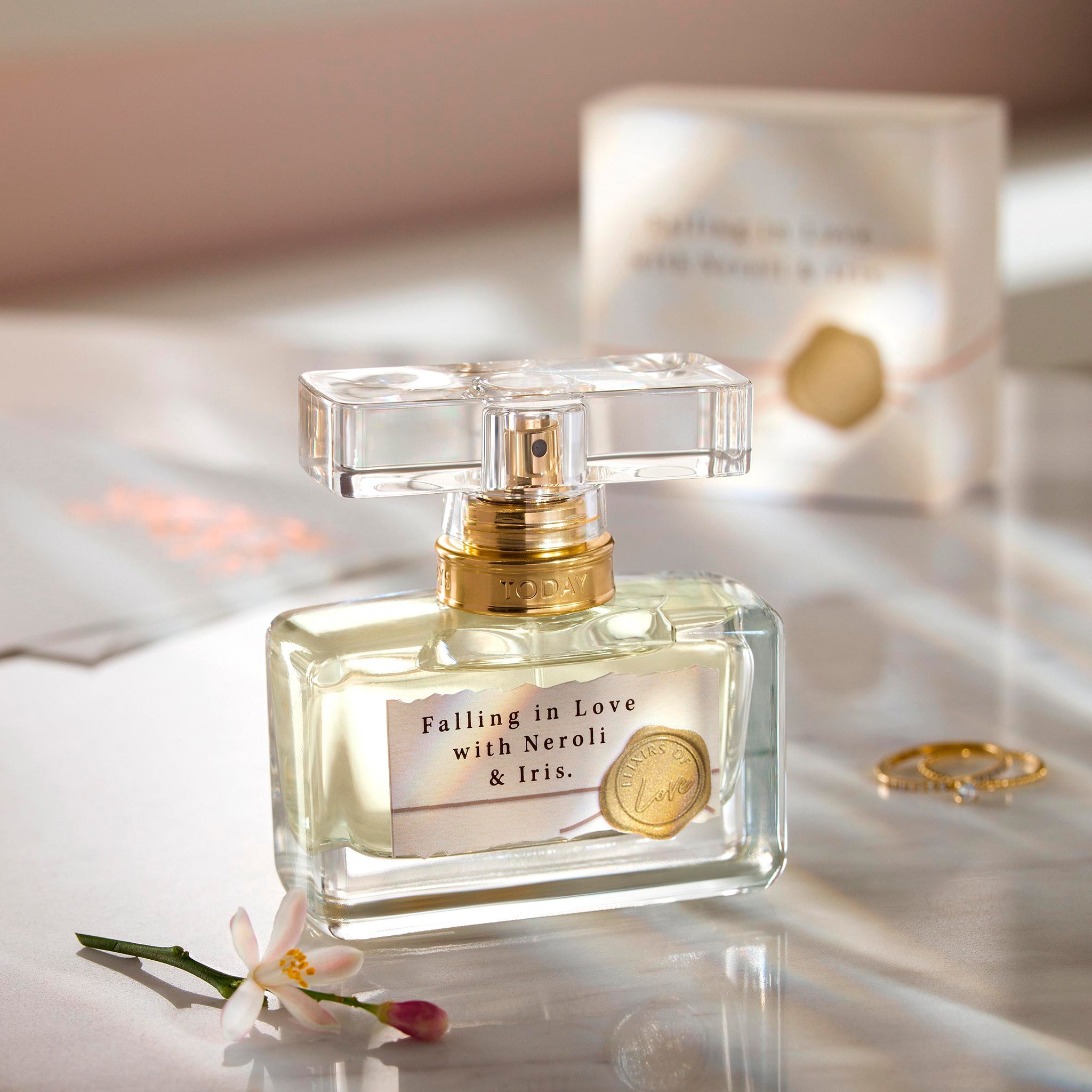 Discover the beautiful new perfume from the bestselling Today Tomorrow Always, Elixirs of Love collection. Embrace the happiness within your heart with the citrus, floral and woody scent Falling in Love with Neroli & Iris Eau de Parfum. The sparkling and luminous neroli falls in love with a delicate iris, protected by the caring softness of vetiver. A hymn of happiness and true love.